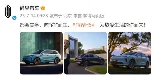7月14日,电车之家获悉尚界汽车在微博正式宣布将推出尚界H5,根据曝光信息新车上市即搭载HUAWEI ADS 4。