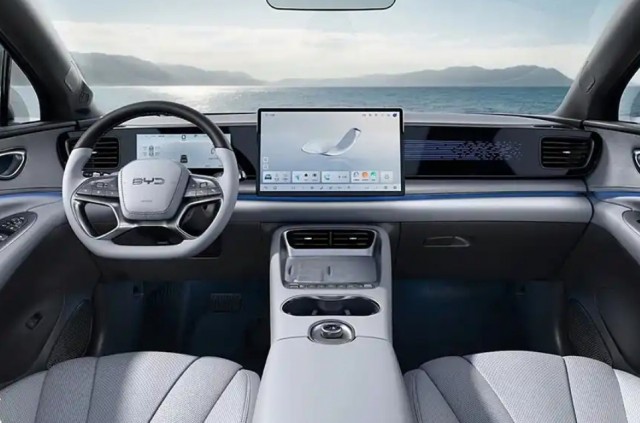 内饰部分,比亚迪海狮06 中控配备了大屏。中控台配有贯穿高亮黑色饰板,全液晶仪表为嵌入式设计。四辐造型方向盘采用双色皮质包覆,应用怀挡式换挡机构,进一步提升了车内的豪华感。