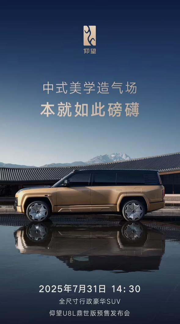 日前,我们获悉仰望U8L鼎世版将于7月31日正式预售。新车将会在轴距以及配备部分进行多项升级。