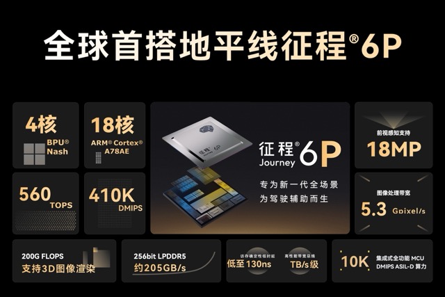 车提供了猎鹰700驾驶辅助系统,携手辅助驾驶计算方案供应商地平线,首发以征程6P旗舰芯片为基座的全场景驾驶辅助系统。
