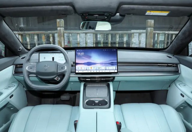 内饰部分,新车中控配备了大屏,同时推出专属星环雾蓝限定配色,结合中式对称美学设计,颜值感拉满,车机搭载高通8155车机芯片。