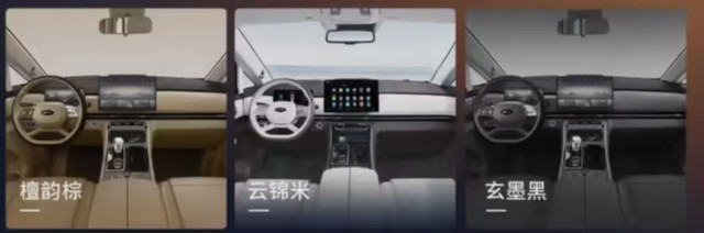 内饰部分,新车提供了三款配色,分别为檀韵棕、云锦米、玄墨黑。智能化配置部分,新车搭载了12.3英寸液晶仪表+12.3英寸中控屏以及HUD抬头显示。车内提供2-2-3的座椅布局,高配车型二排座椅提供通风/加热/按摩功能,并配备17.3英寸后排屏幕。