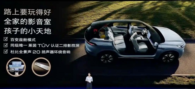 内饰部分,新车配备了中控大屏,高配车型二排会配备15.6英寸吸顶屏幕,冷暖箱。后备箱空间为650L-1798L。