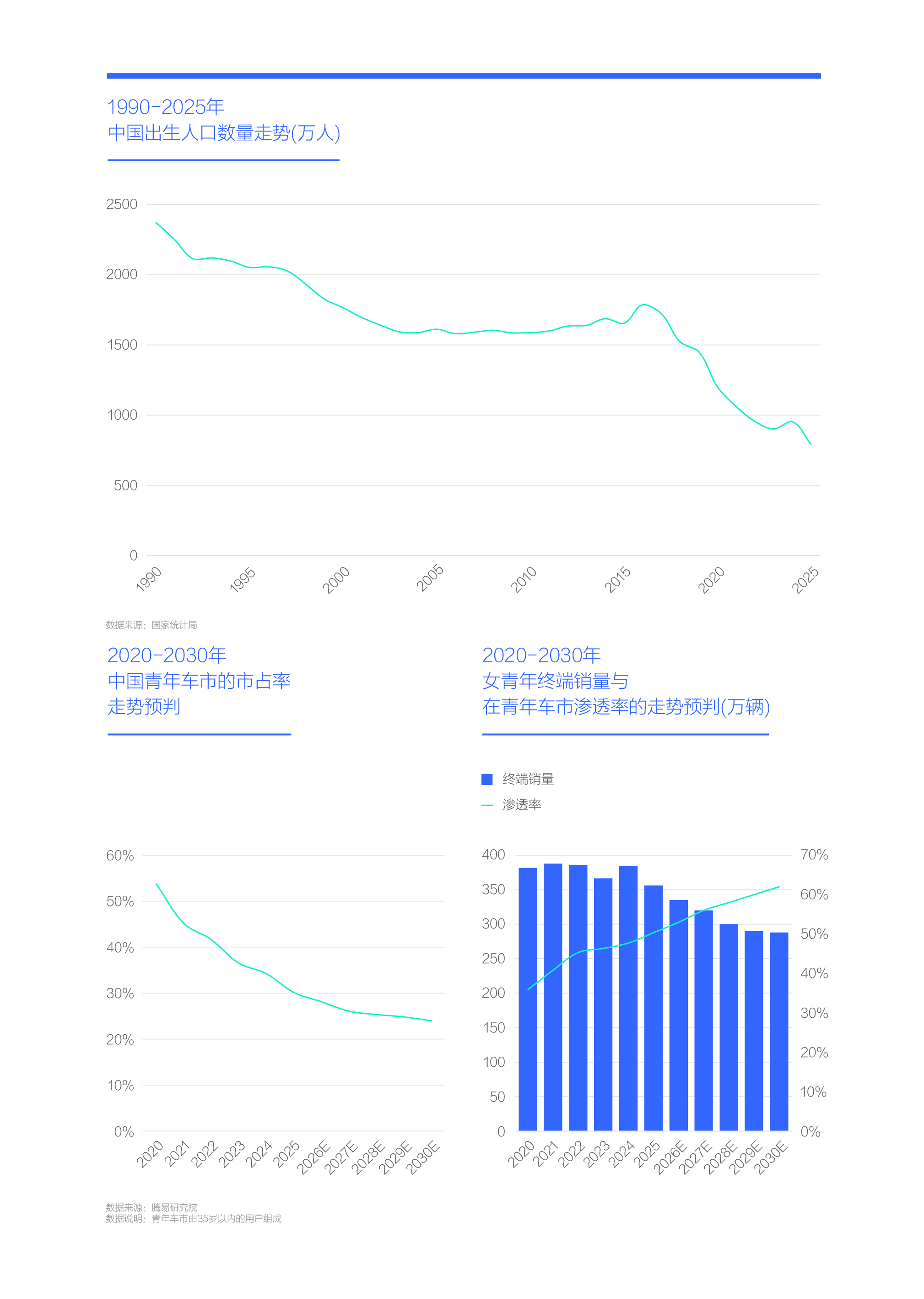 2026-2030年,青年用户的高学历占比会持续提升、晚婚晚育现象会不断加剧,男女用户的购车节点还会持续前移;