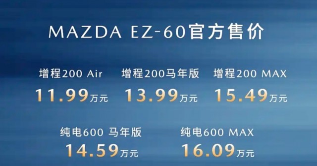 日前,电车之家获悉马自达EZ-60马年版迎来正式上市,新车共推出2款车型,售价13.99-14.59万元。