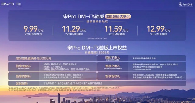 日前,电车之家获悉比亚迪宋Pro DM-i飞驰版正式上市,新车限时超级优享价9.99-12.99万元。值得注意的是新车CLTC纯电续航提升至301km,满油满电综合续航达到1735km。